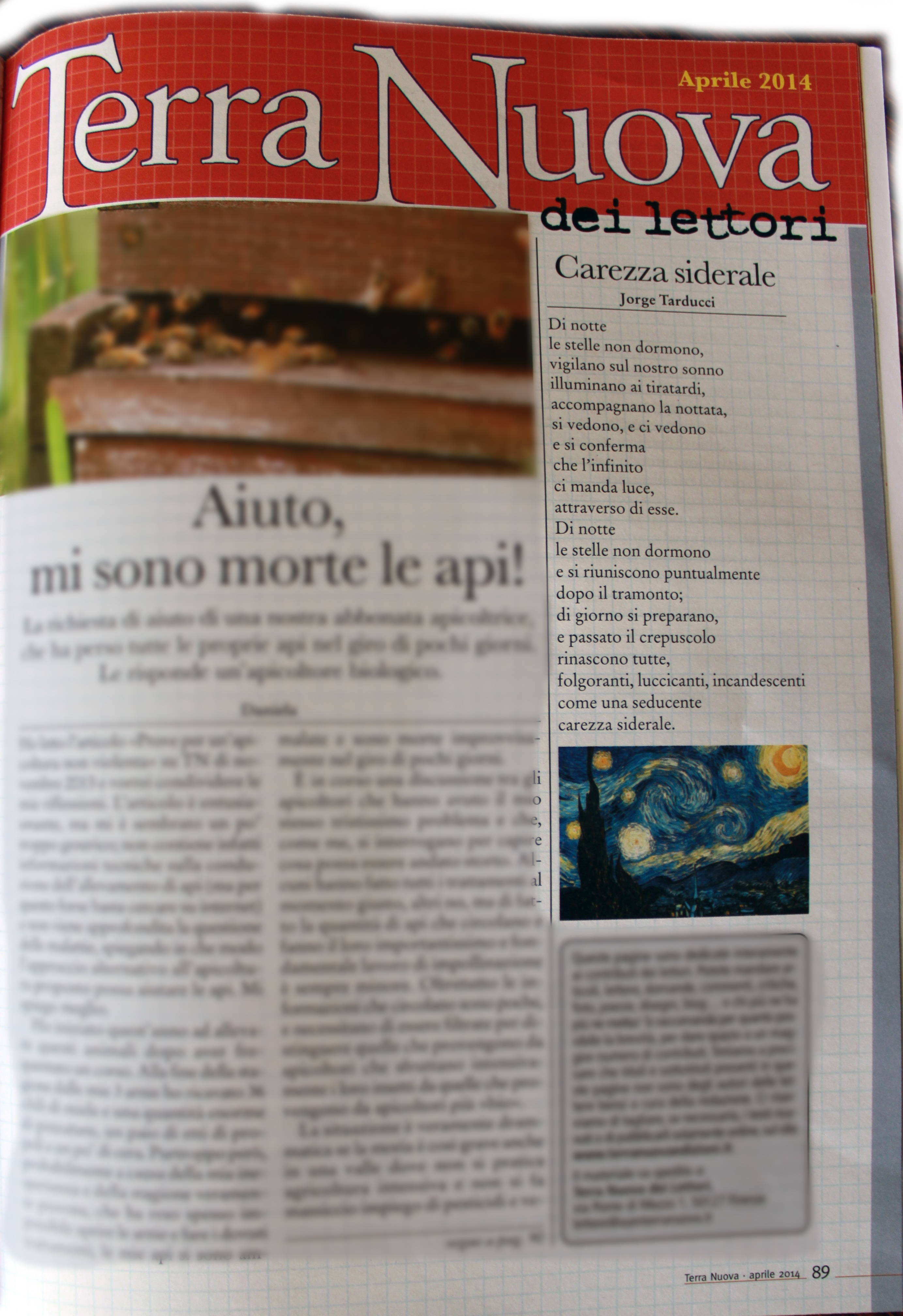 En el nùmero 293 de Terra Nuova, fue publicada la poesìa Caricia Sideral, en traducciòn al italiano.